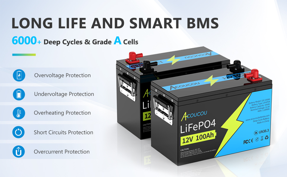 If you want to get your own solar system, lithium iron phosphate battery is a better choice to store excess power, such as 12V 100Ah Acoucou LiFePO4 batteries. Compared with an acid-lead battery, it is lighter, smaller and has a longer lifespan, but it is more expensive. Thus, store properly so that we can use the batteries longer and save more ...
