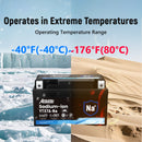 High and Low Temperature Resistance: -40℉ (-40℃) ~ 176℉ (80℃) operating temperature, -40℉ continuous discharge, super performance. It is superior to lithium batteries. Compared with lithium batteries, it does not bulge or leak, and is safer.